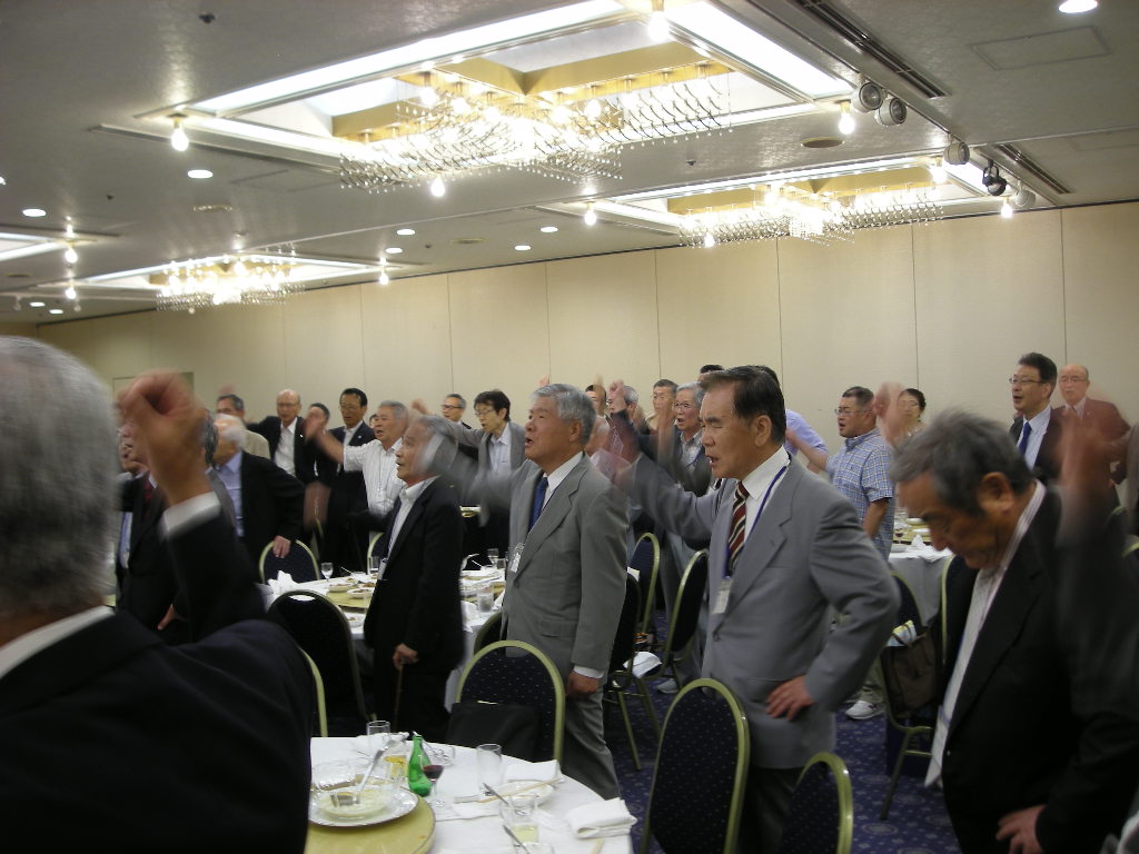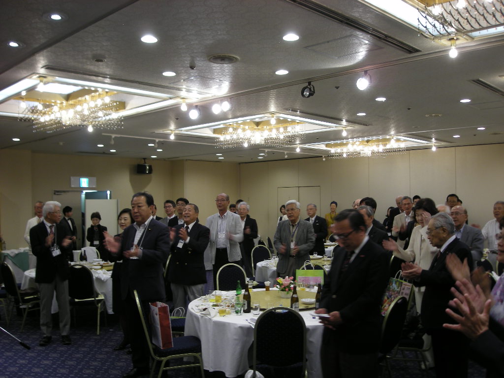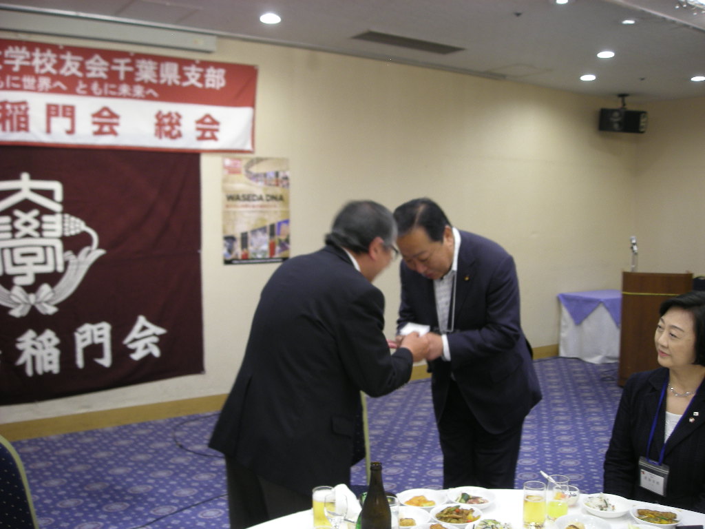 懇親会では、当稲門会会員の前内閣総理大臣 野田佳彦氏も駆けつけていだきお話を伺い、そして新入会員の紹介、会員の近況報告など、和気あいあいとした雰囲気のなか進行し、チャリティのじゃんけん大会、抽選会、そして顧問 上原伸夫氏の指揮の下、「若き血」、「紺碧の空」、「校歌斉唱」で最高潮に達した後、お開きとなりました。