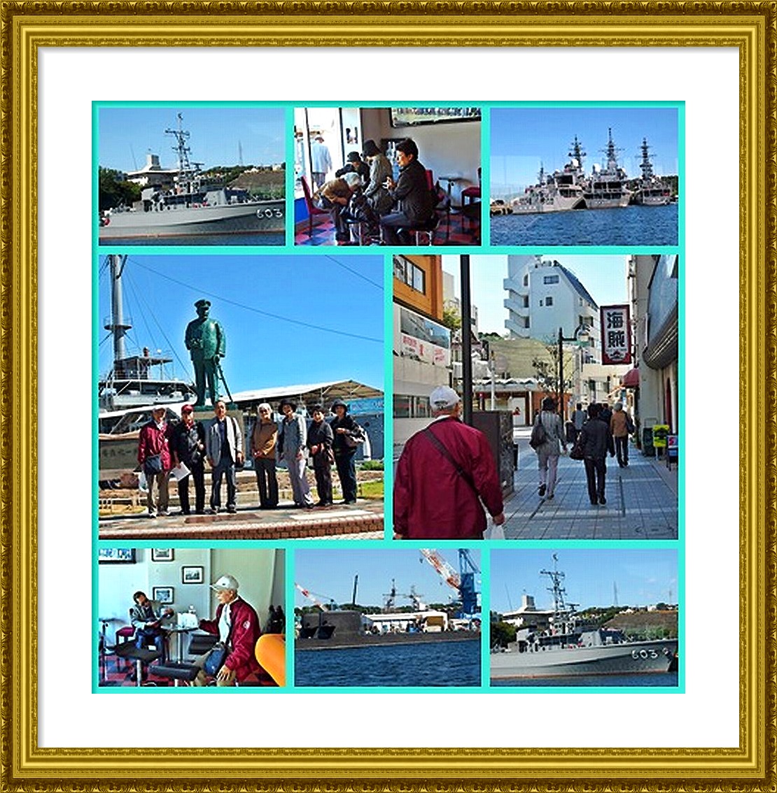 港内には観艦式を控え、日本各地の艦船が集結し、ガイドさんからは、イージス艦、原子力潜水艦、原子力空母、機雷の掃海艇、油、水、ガスの供給船等々の停泊中の艦船の詳しい説明をうけ、一端の艦船オタクになることが出来た。