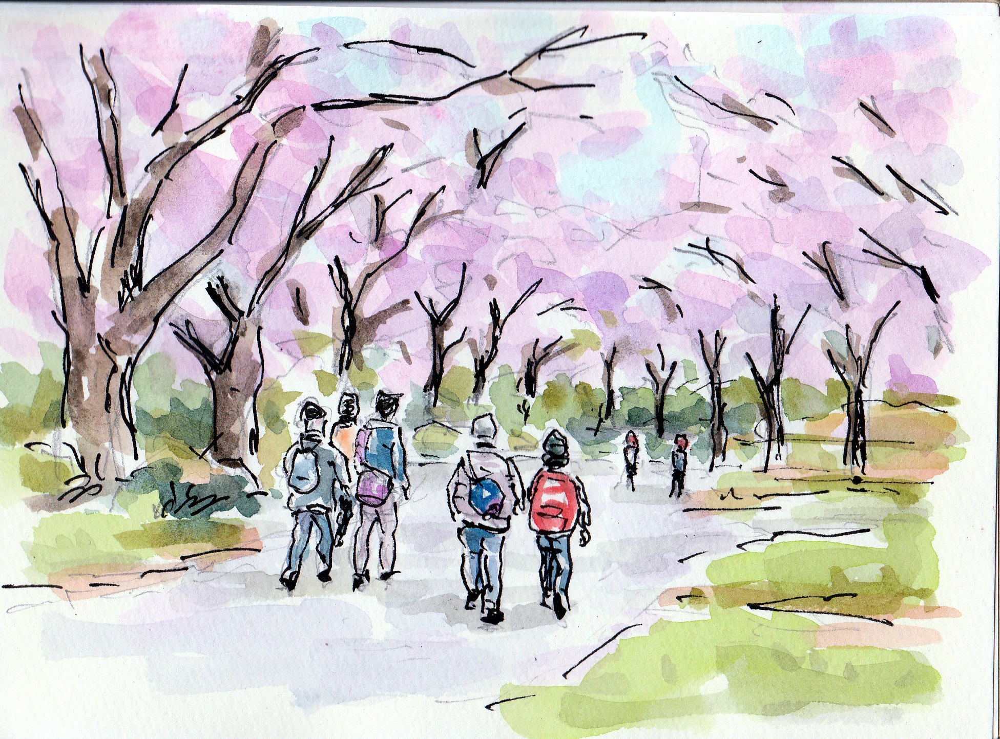 絵画:奥原一好氏による「おゆみ野のみち・花見ウォーク」